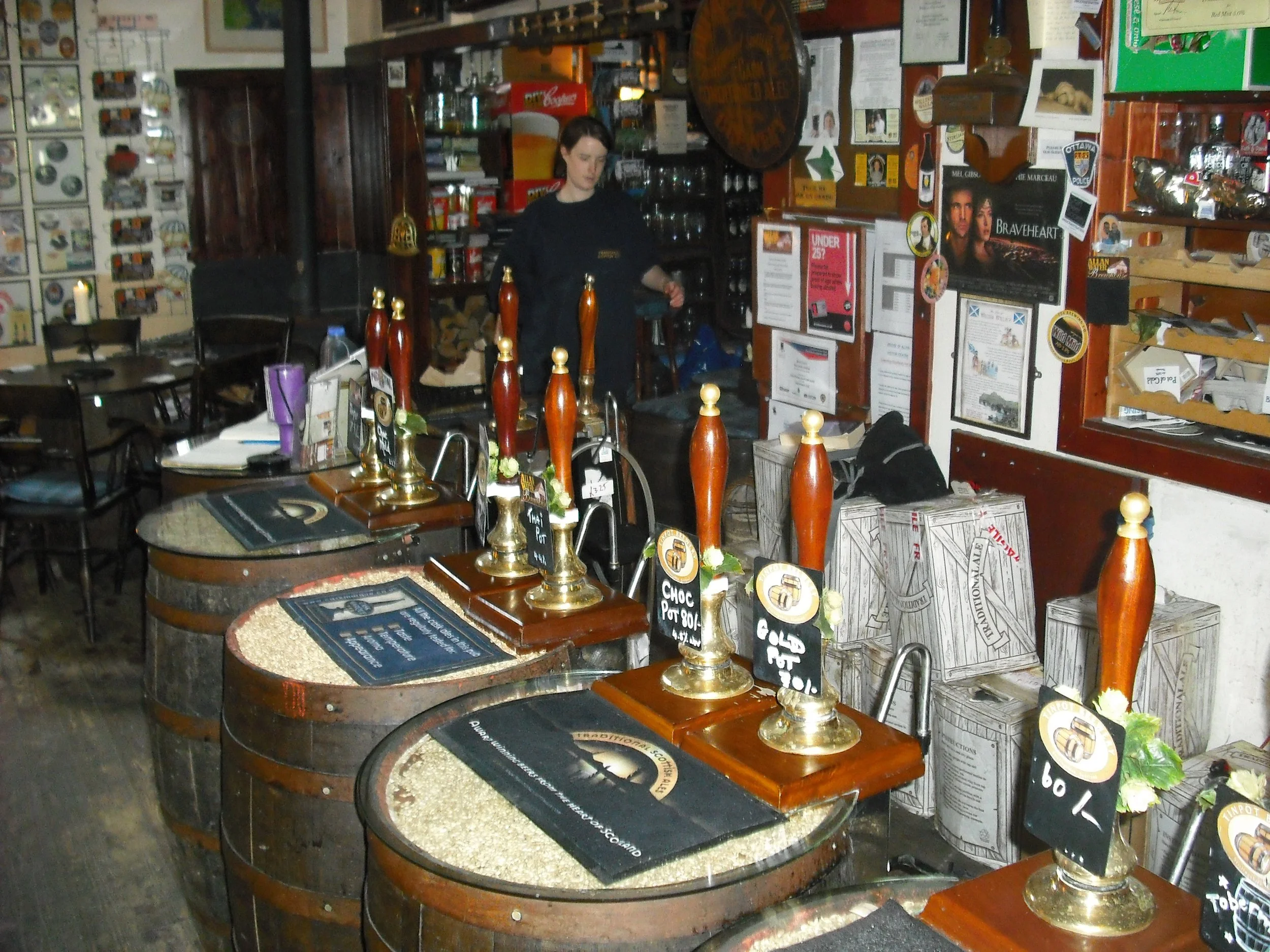 Allanwater Brewhouse bar is excellent. This is Bridge of Allan's hidden gem, found behind The Adamo. Unfortunately, only open 2-5pm it serves several ales from the brewery. The interesting bar made from barrels has books and games available. there are a variety of tables including outside courtyard, and a large collection of beer bottles. Dog friendly and evening pizza.
