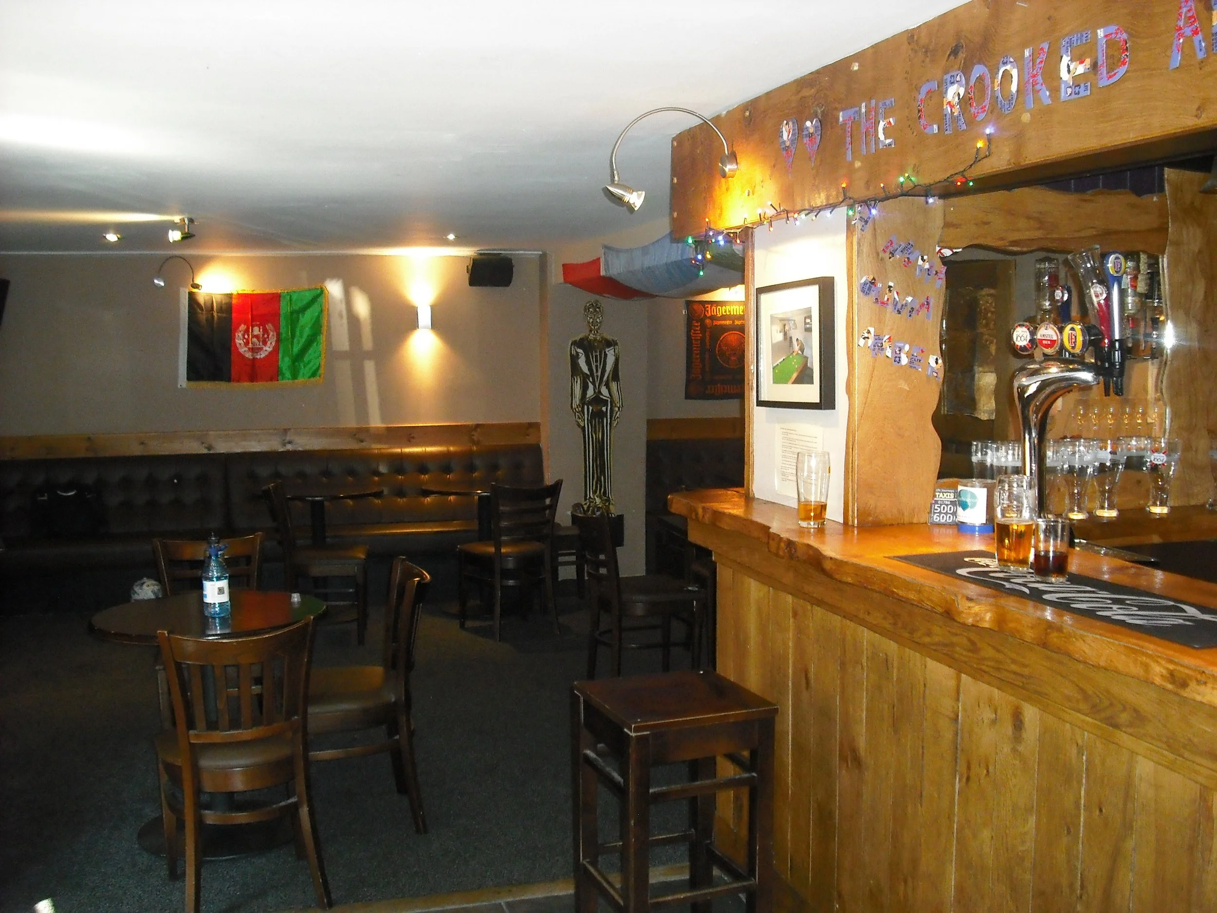 The Crooked Arms has been refurbished and re-named as The Crook Bar (and Tapas) is popular and noisy. small serving area close to door which then opens out into large lounge with second serving area from same bar. Lounge has small stage. Sometimes awkward to get past first swerving area to get to seating.