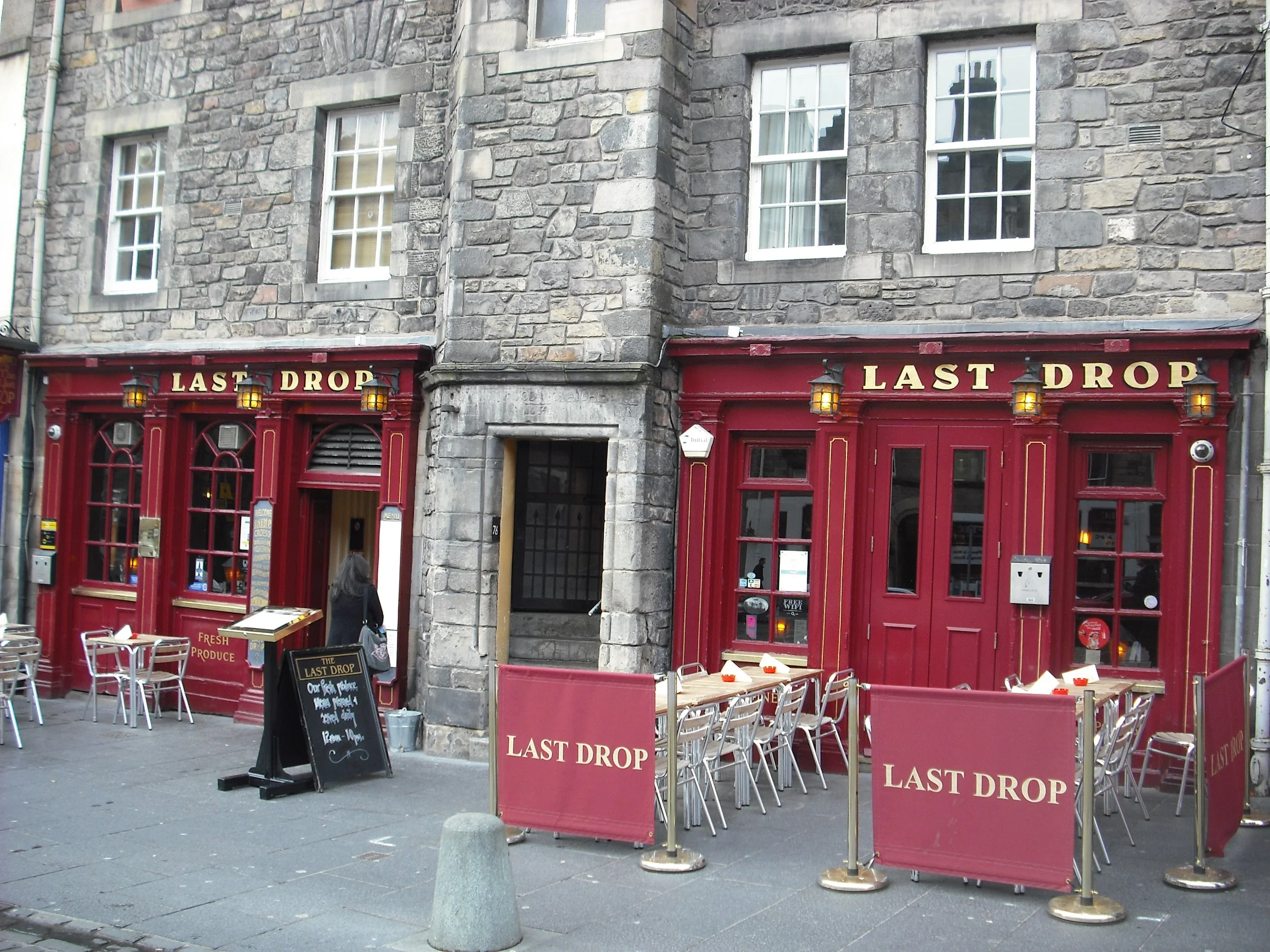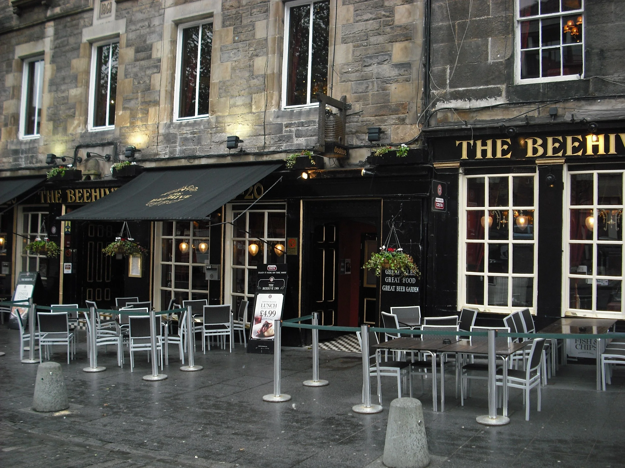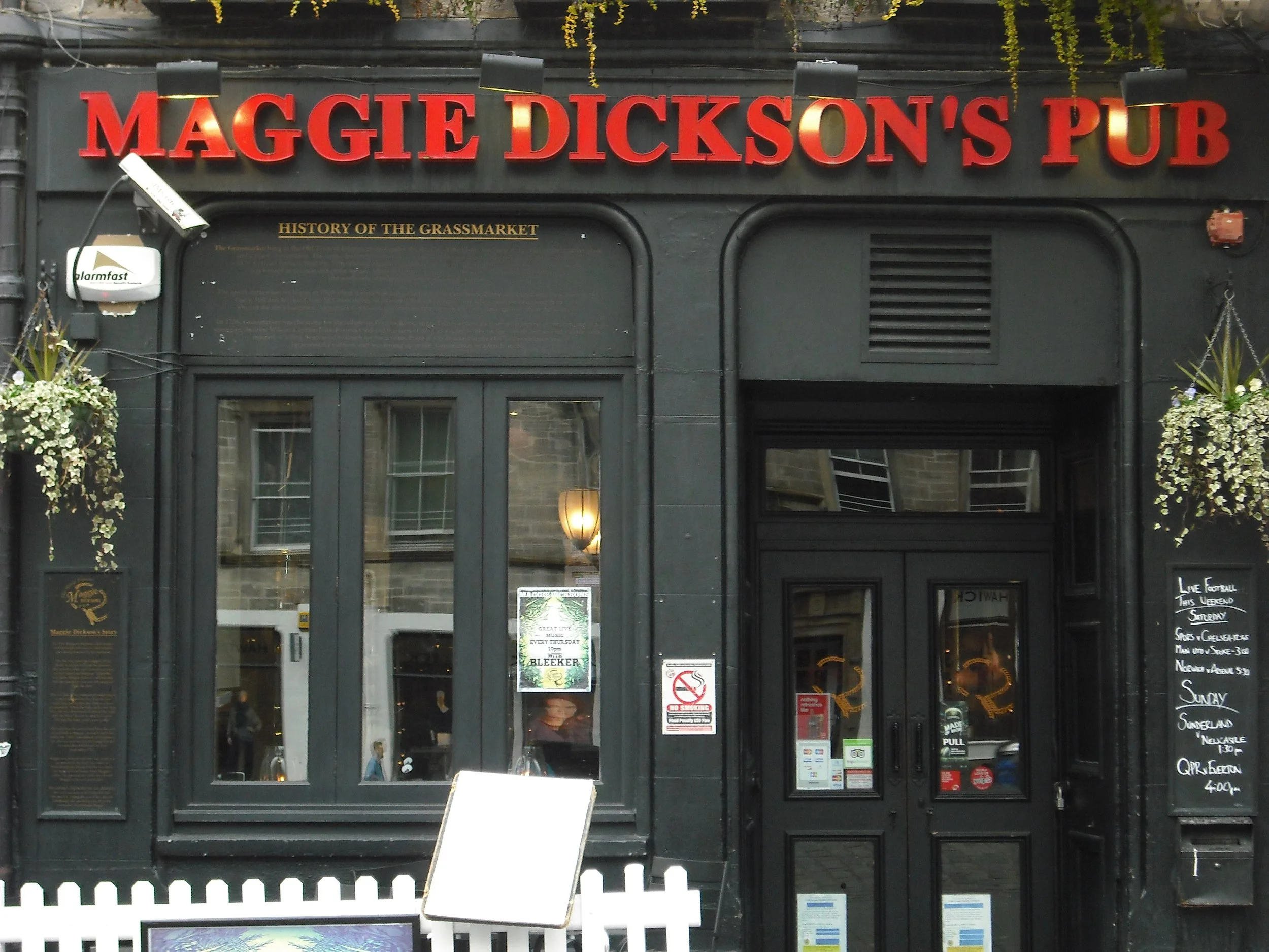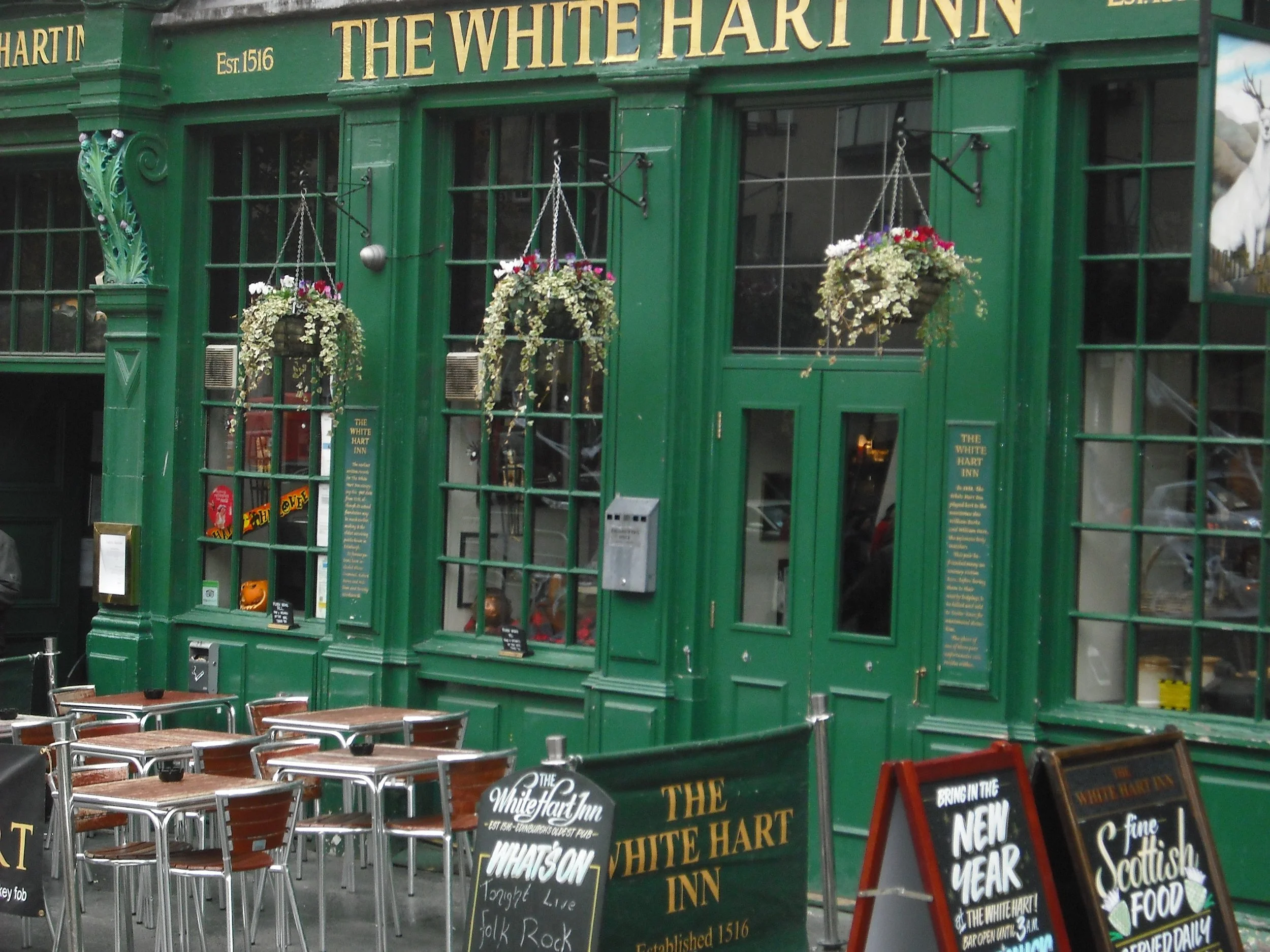 They are, starting from the top and all running down the right-hand side, Biddy Mulligans, Maggie Dickson's Bar, The Last Drop, The White Hart, The Beehive, and The Black Bull. Along the foot of the Grassmarket is The Fiddlers Arms and around the corner from there and up a little was the JC Christie’s (which was Grassmarket Pub).