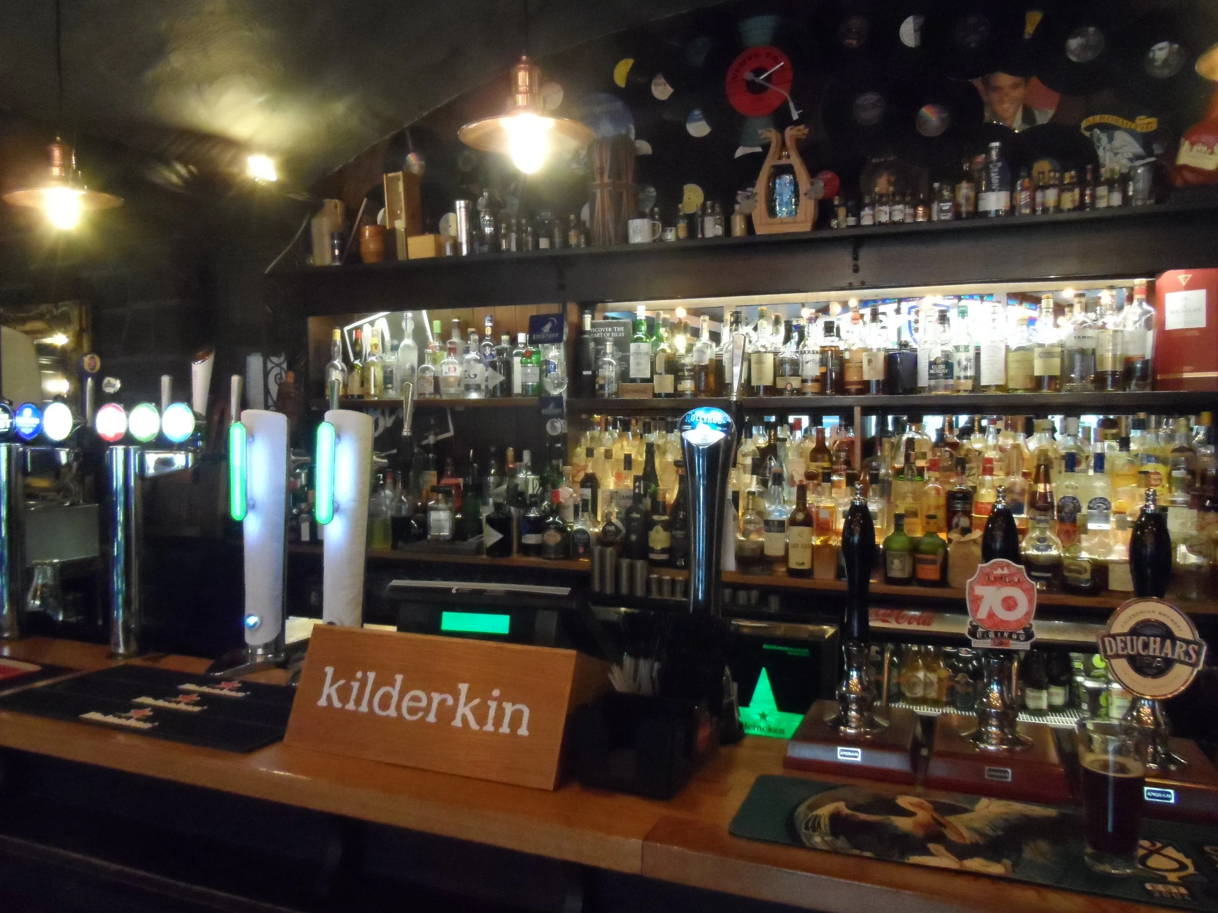 The Kilderkin is a food serving bar. the servery is against the far wall. Booths are around the window and up the left side wall. There is a second room through to the right beside the end of the servery. This takes you to a small food serving bar and then into a bigger room with booths along the far wall and wooden tables in centre of room.