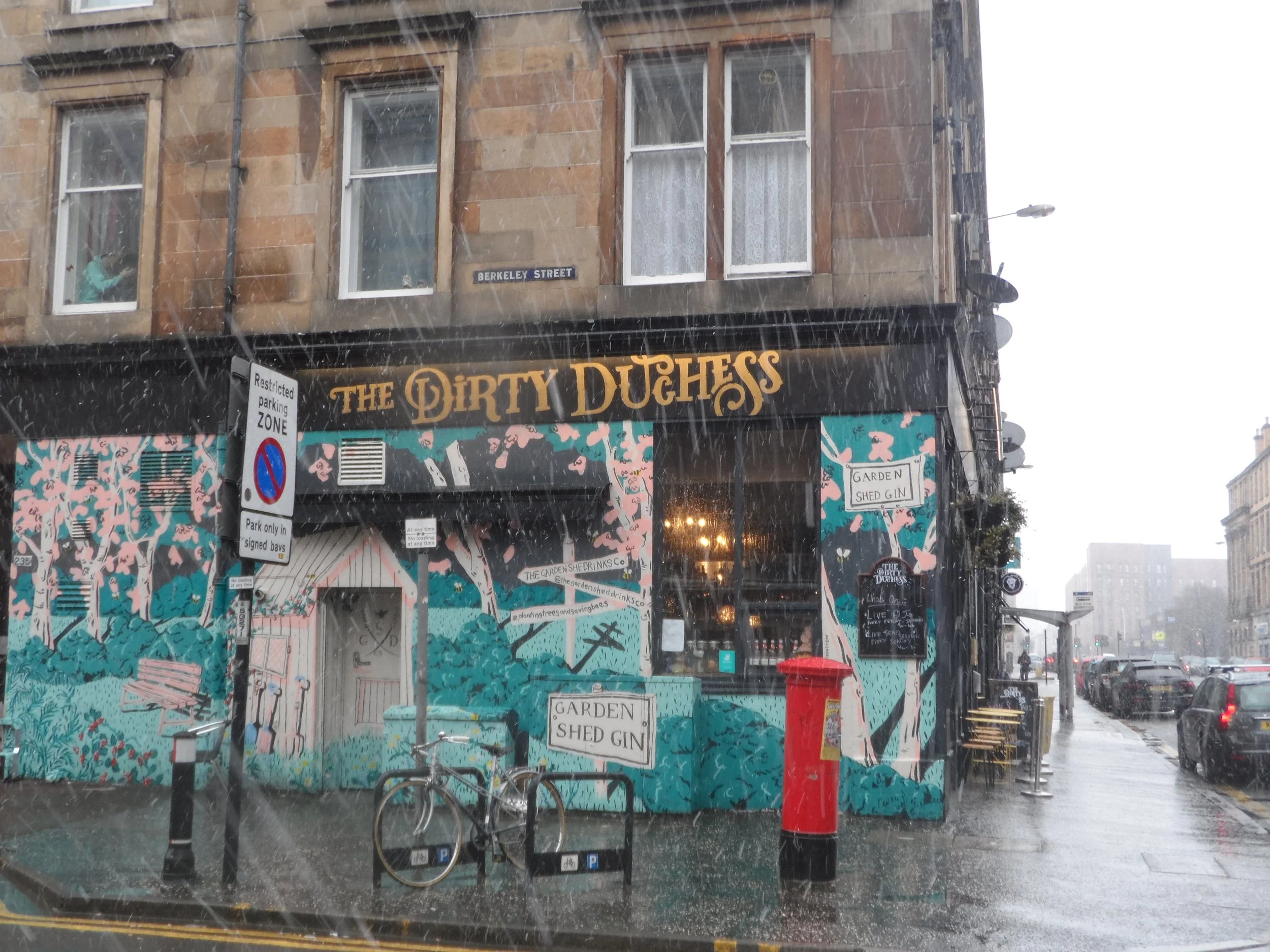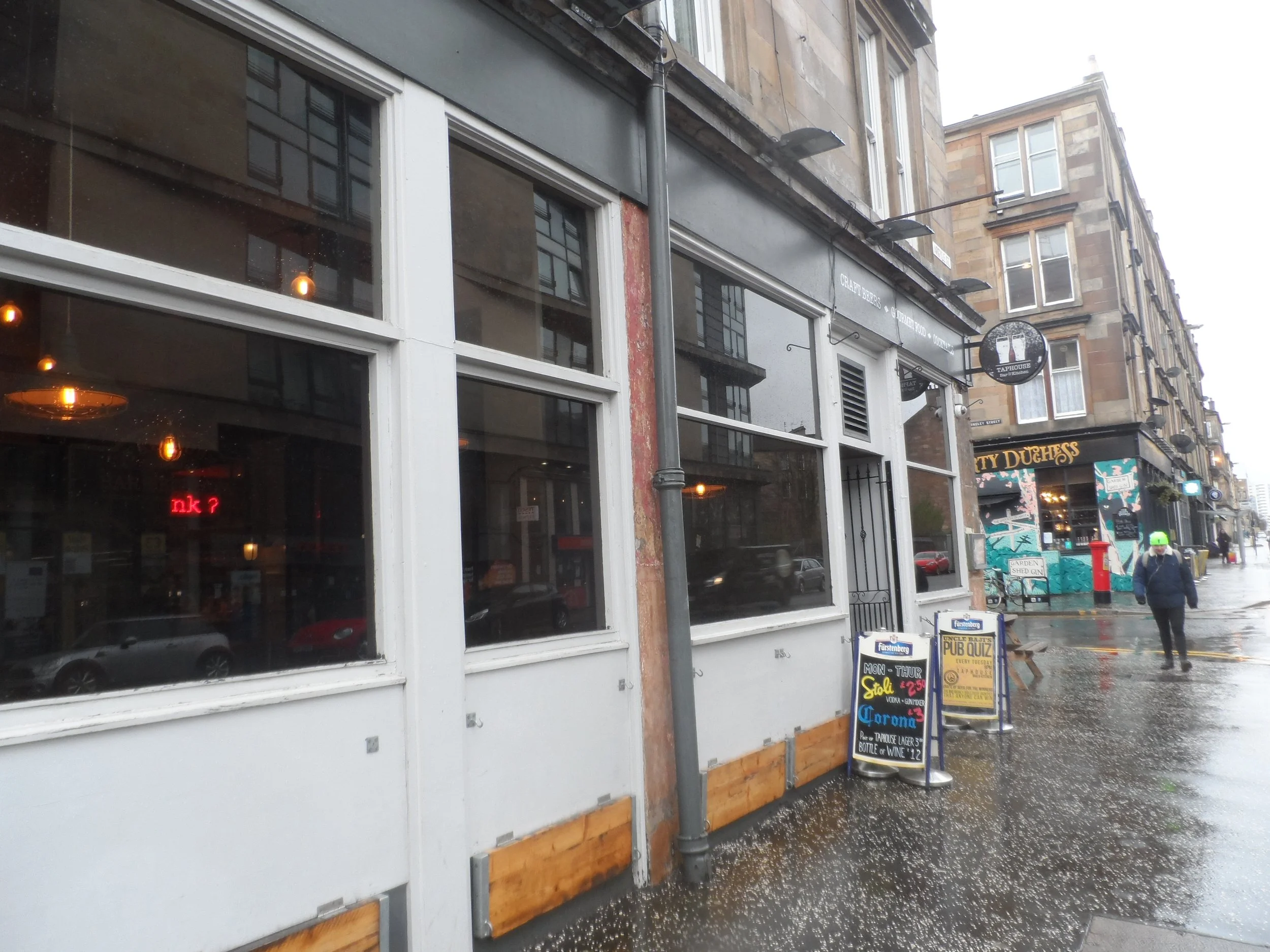 Opposite this corner is The Brass Monkey and across the junction Lebowskis. Walk up Argyle St to The Dirty Duchess and across the junction The Taproom. At the next corner turn right onto Kelvingrove St and The Grove will be on your right. Further up Kelvingrove St low down and across the next corner is The Big Slope. Leave Kelvingrove St and turn along Sauchiehall St. At the corner two blocks along is The Snaffle Bit. You could return to Argyll St cutting out three visits or by continuing up Sauchiehall St there is The Butchershop and then on and opposite Kelvingrove Art Gallery and Museum is Brewdog. Backtrack a corner from here and turn up Hastie St where at the top and across the road is Dukes.