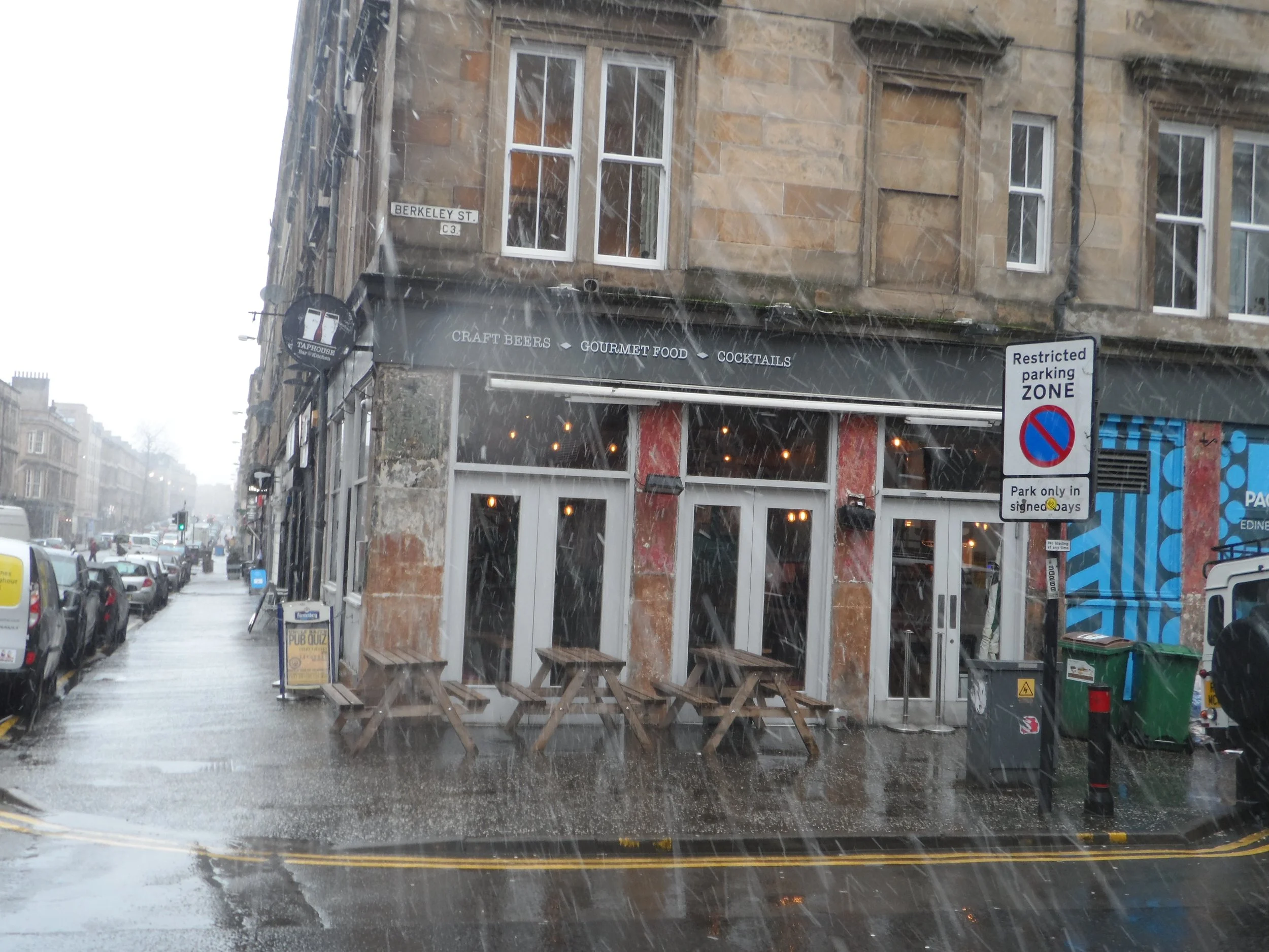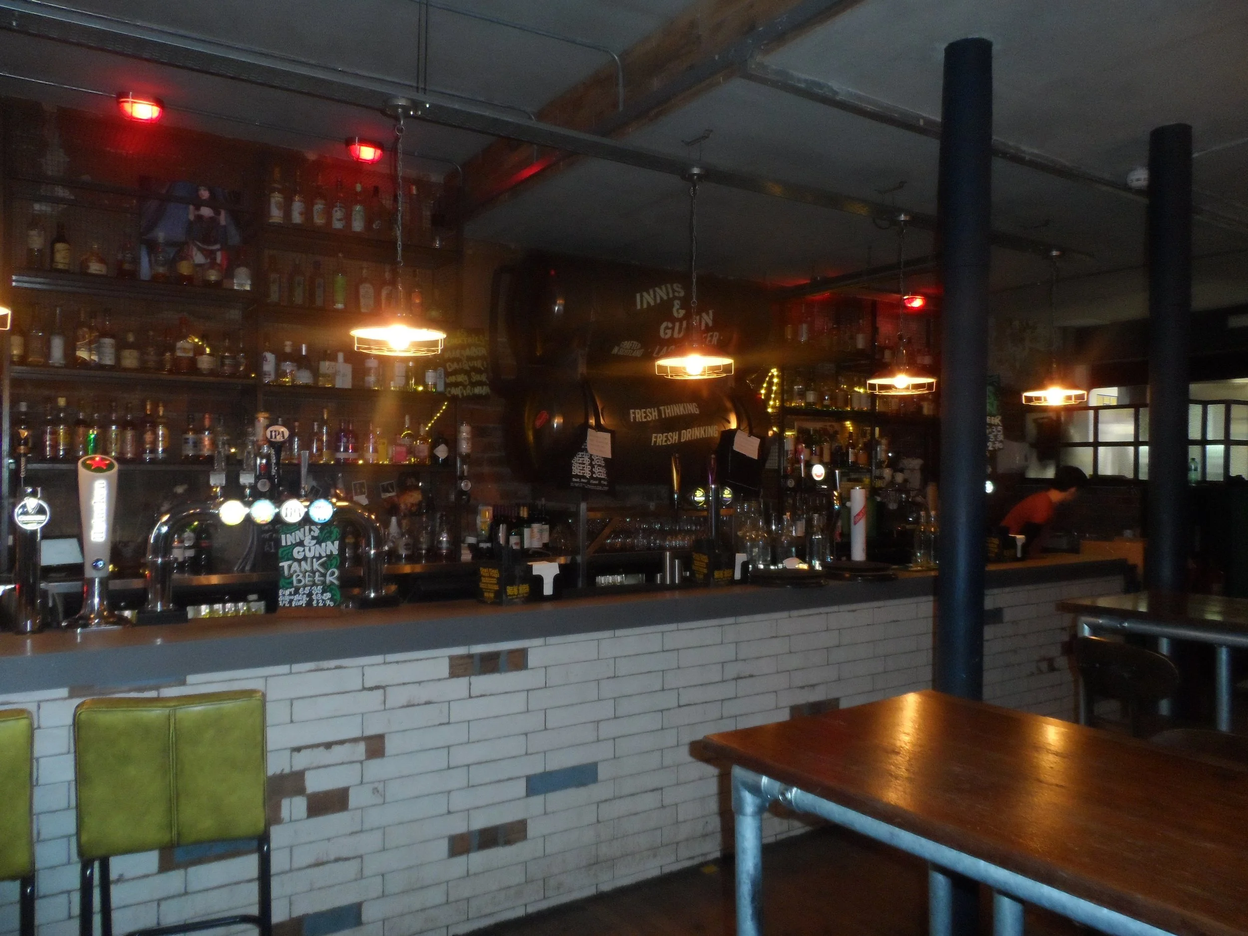 BrewDog opposite Kelvingrove Art Gallery is a smaller attractive slice of the chain. It has the usual BrewDog brews on the display above the bar. It is not alone in the are to go for the stripped back brickwork and old floor. Servery is on the right of the rear wall with some booths on the short right-hand wall. Dining sized tables and chairs along window at front and side with some tall tables in middle. Bright and airy during the day there is food, dog bowls (not to eat) and even young children welcome (highchairs available) making it accessible to a wide range of folk.