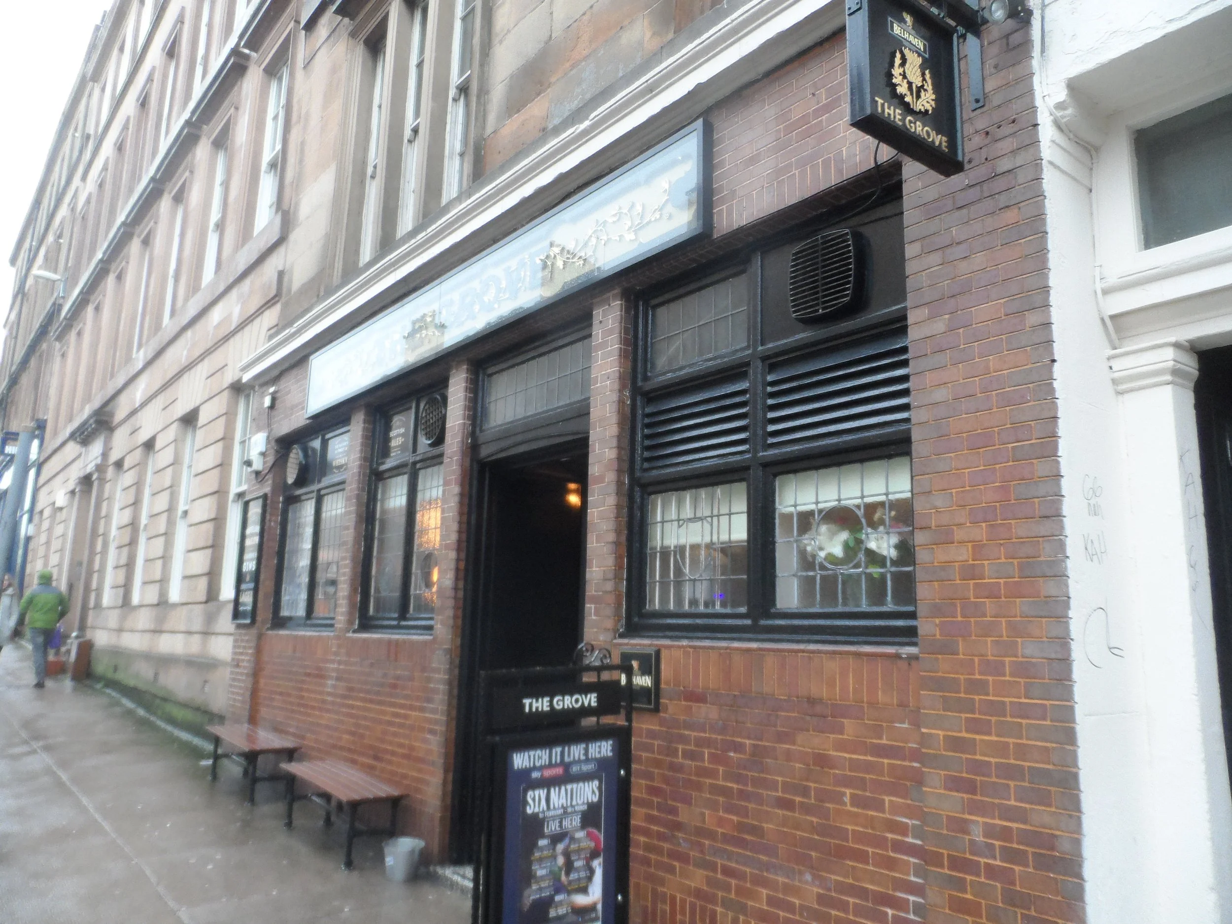 The Grove (Belhaven) A small one roomed locals pub. Servery along the left wall with some seating either side of it. Banquette seating along right wall with stools and chairs. Centre of room has more tables and chairs. History - OLD GLASGOW PUBS