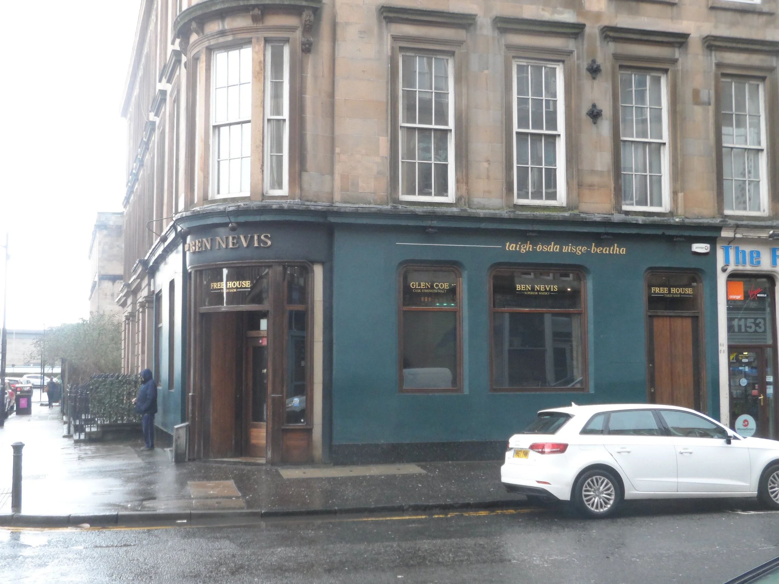 Walk down from Dukes and back onto Argyll St. Here on the left is The Islay Inn and further down is The Park Bar. Cross over Argyll St and turn left and just along Kelvinhaugh St is No. 78. Back on Argyll St corner at the corner is The Kelivingrove Café. Now going down Argyll St there is The Ben Nevis on the next corner. In the middle of the next block is The Finneston.