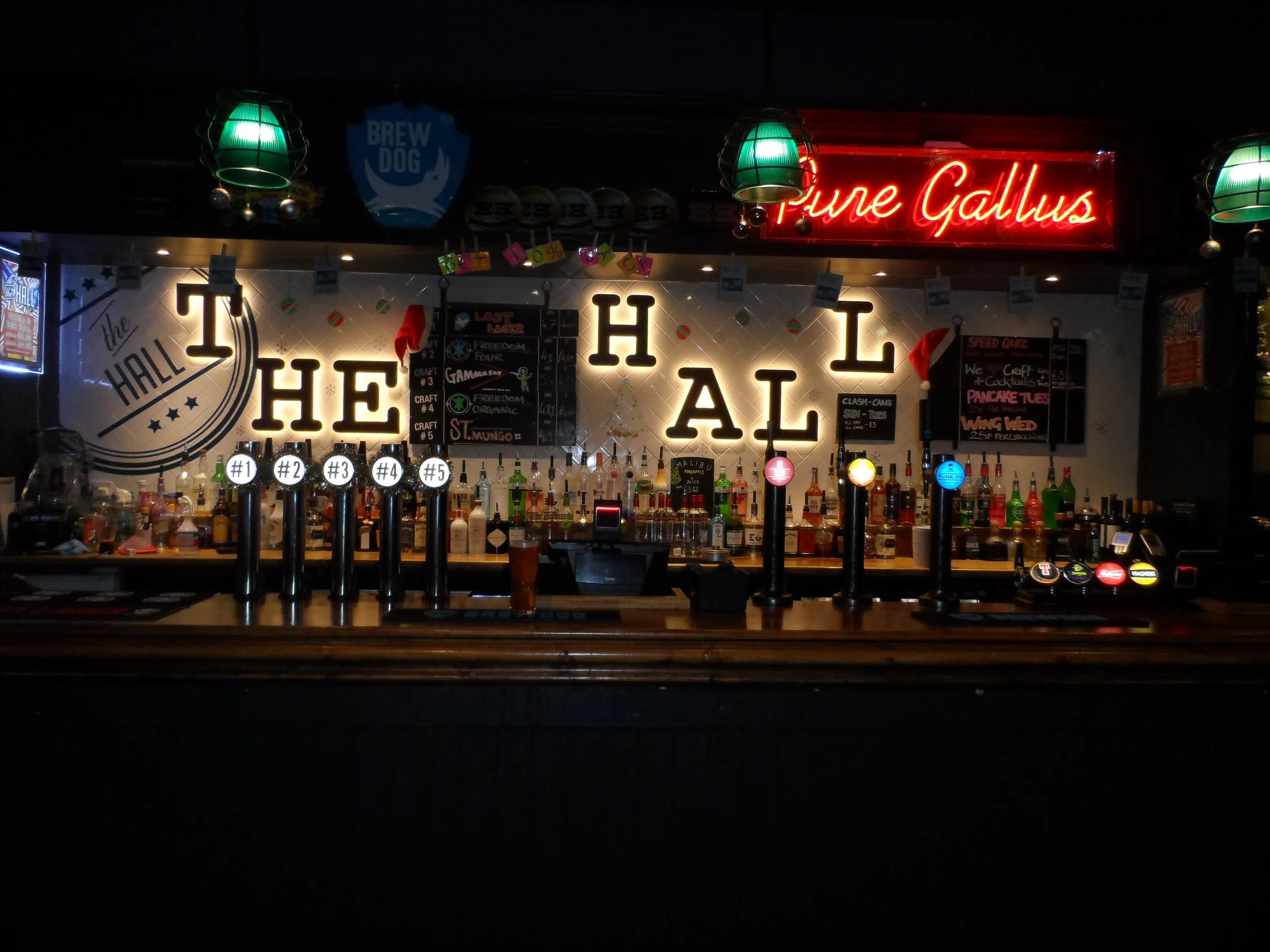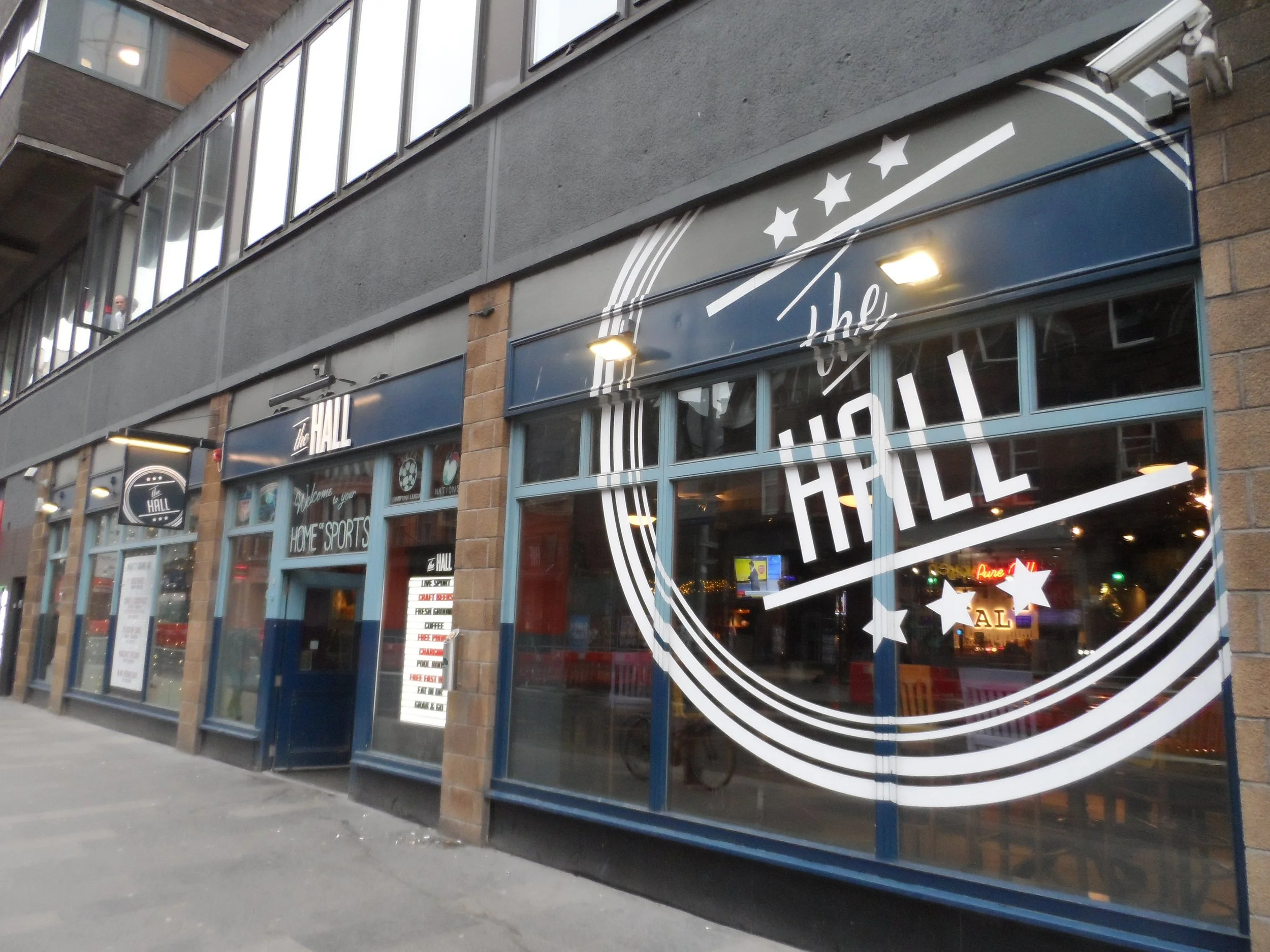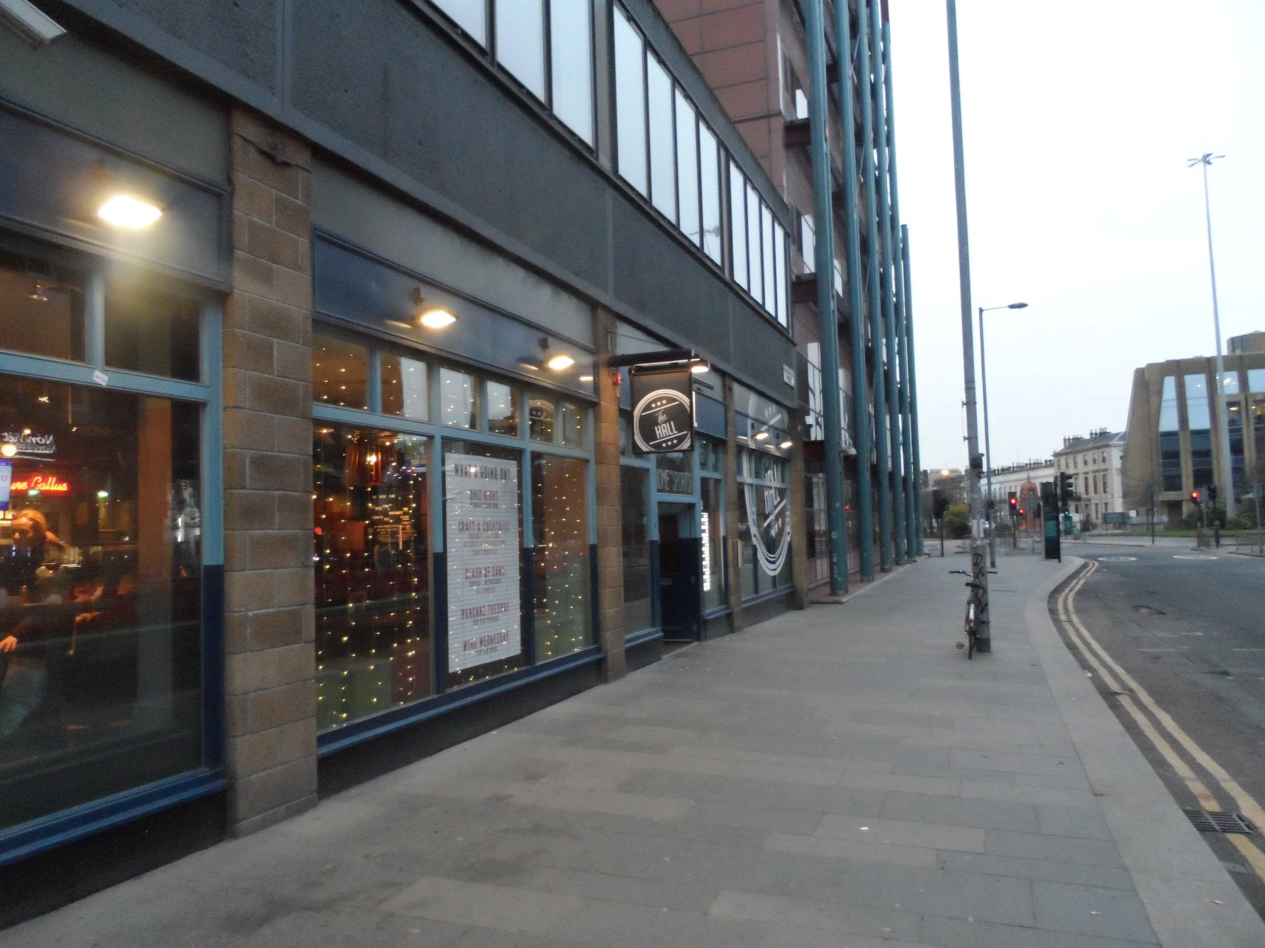 The Hall entrance is into middle of very large room with full length windows on either side and with a tall servery along the back wall. A place targeted for lots of customers -students, craft beer drinkers, food, sports on TV and pool players.
