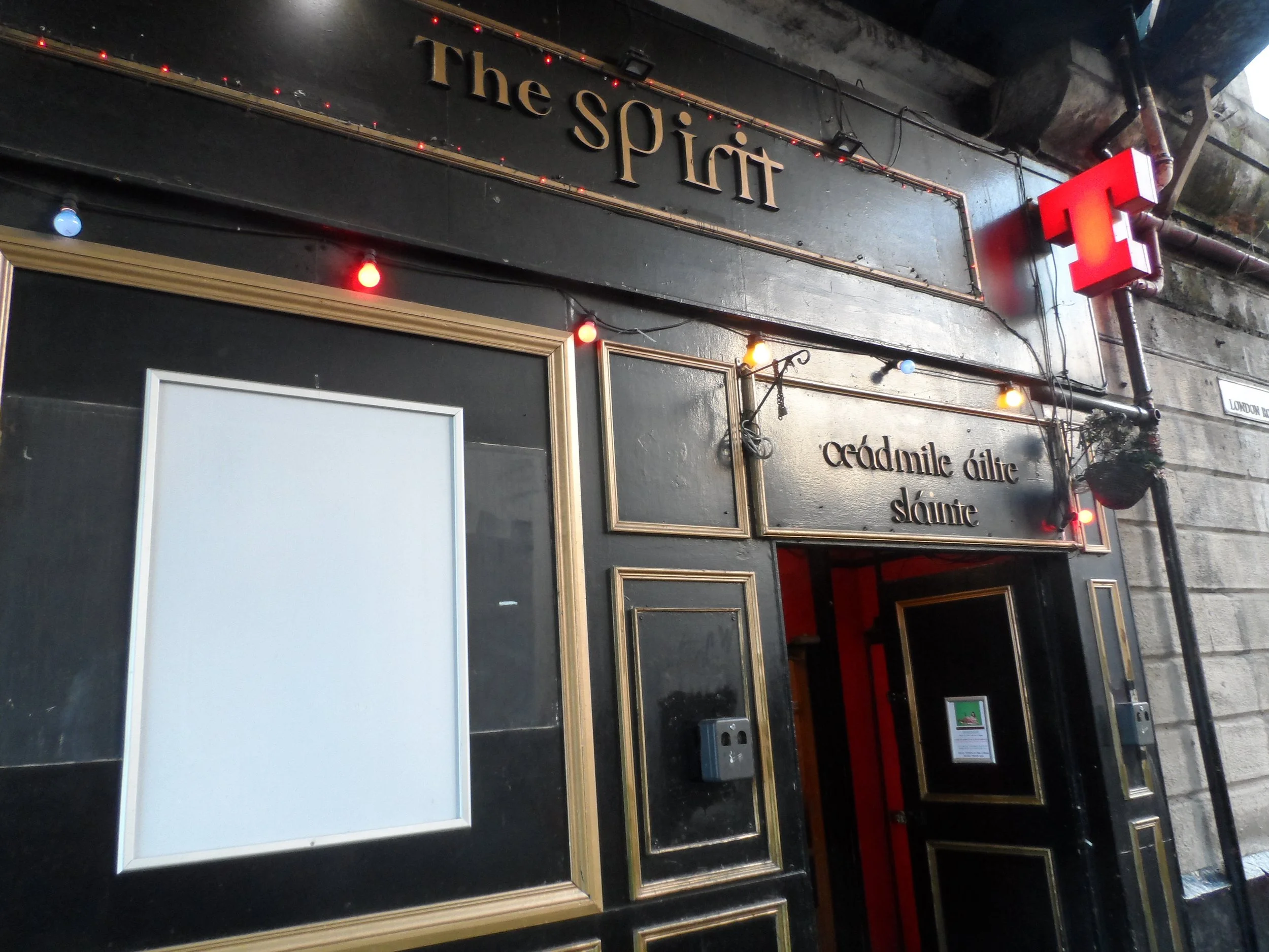 The Spirit is a two roomed bar in within vaults underneath a railway bridge. Down a few steps brings you top the main drinking area with the servery along the left-hand wall with a big screen above the gantry. There is some table seating opposite the counter but it is mainly stools at the bar or standing. Subdued lighting and curved ceiling gives a good atmosphere. Beyond the bar area and through an archway is a performance area with stage straight ahead. This room has tables and chairs along the walls and lots of standing in middle