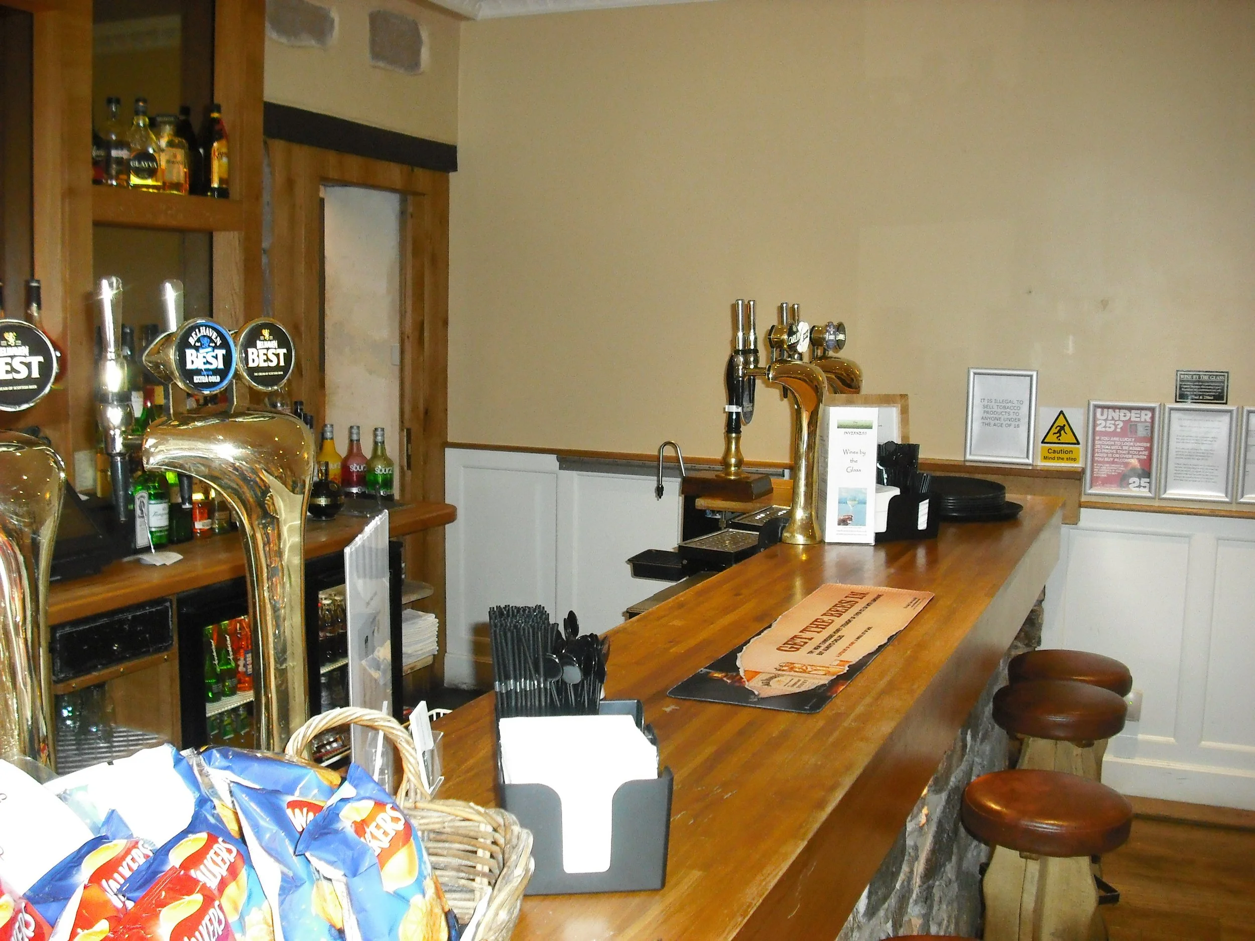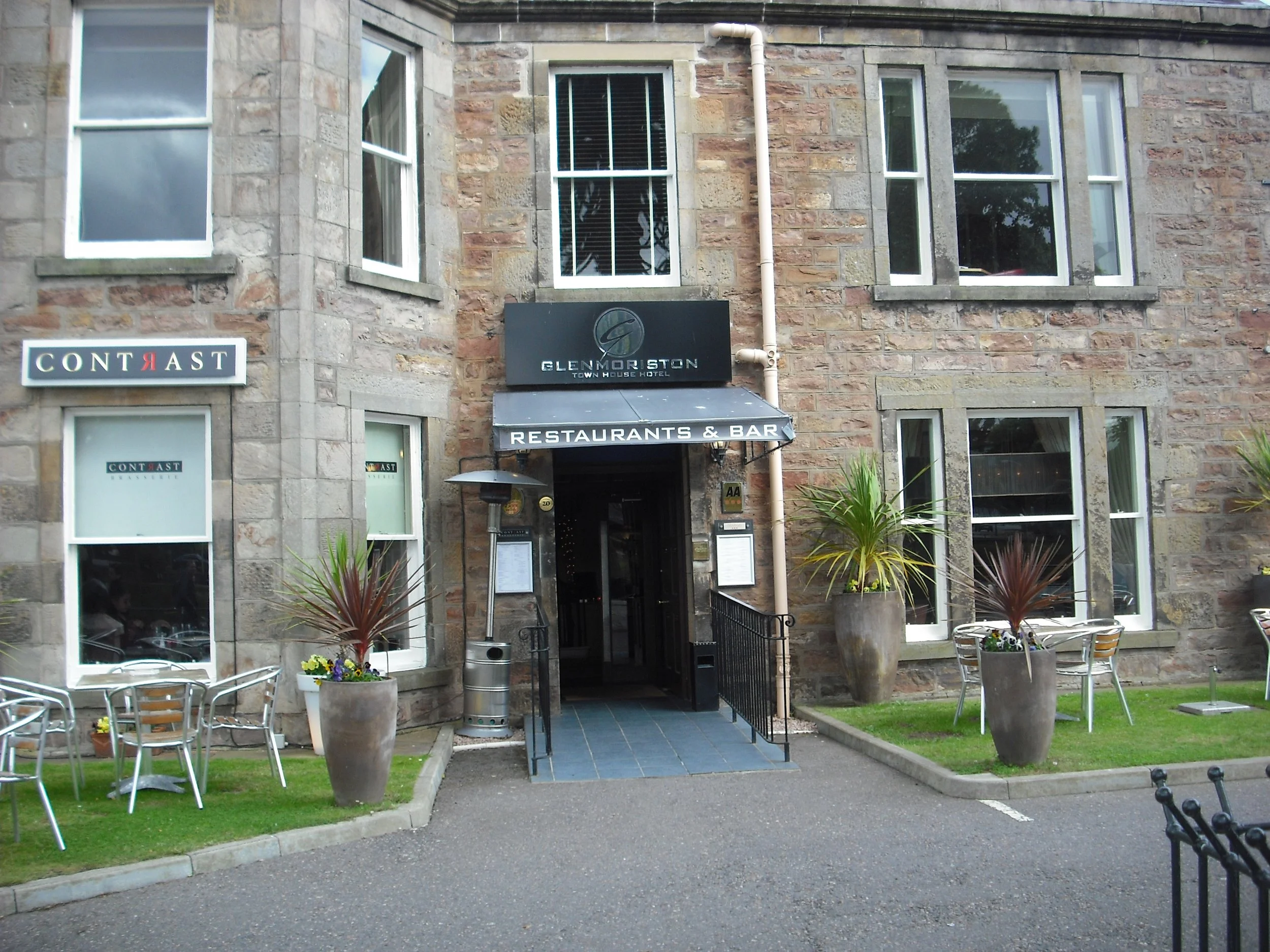 Glen Moriston Townhouse Hotel comprises two restaurants, The Abstract and Contrast, and a Piano Bar. The bar was very quiet and dark with dark chairs and tables. Can have bottles of Black Isle.