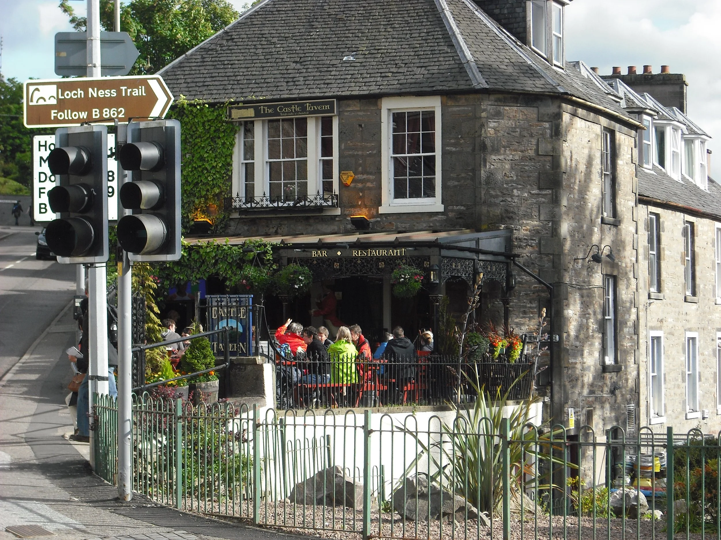 Nico's at Glen Mhor Hotel. The bar is attached to Nico's Restaurant where you go down a few steps to a very comfy lounge. Lots of couches with low tables and a dozen small tables with assorted chairs. The place for a rendezvous though try not to get it as your round in a crawl. Outside tables looking over river at front.