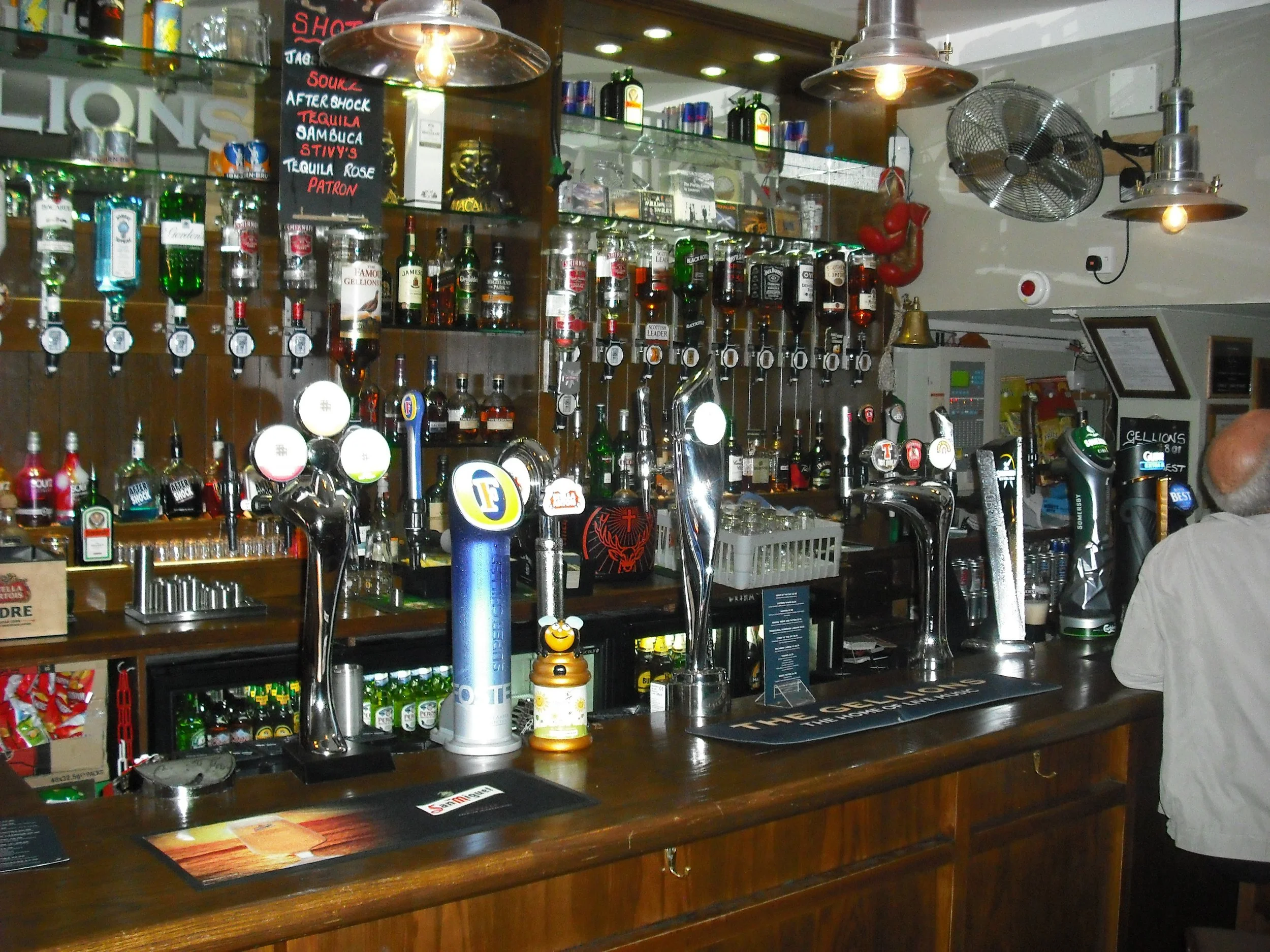 Gellions is the oldest pub in Inverness - although it is only from 1840. Open area at front for performing bands - nightly. Then there is the bar with tall tables. Down a few steps to more seating. At the right of the entrance is a lane taking you to the back bar known as Monty's - this goes through a smoky outside courtyard. Food served daily