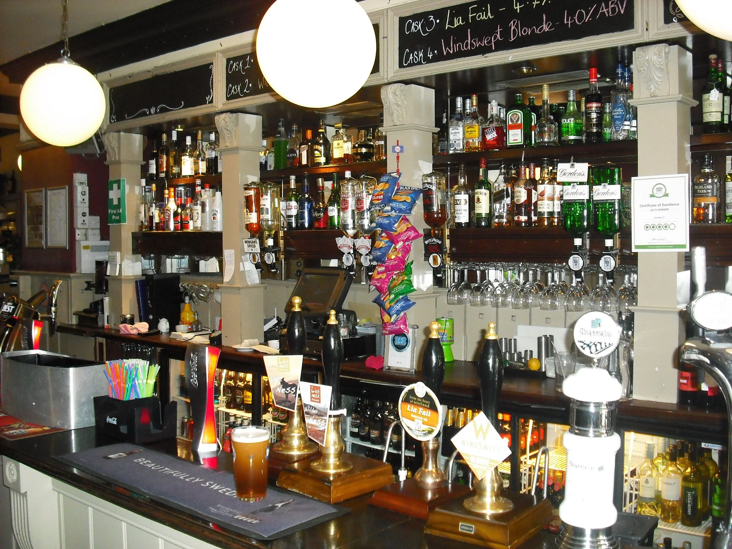real ale (4) : Light Ness, Red Ness, Wilder Ness (all from Loch Ness Brewery); Lia fail; Windswept Blonde