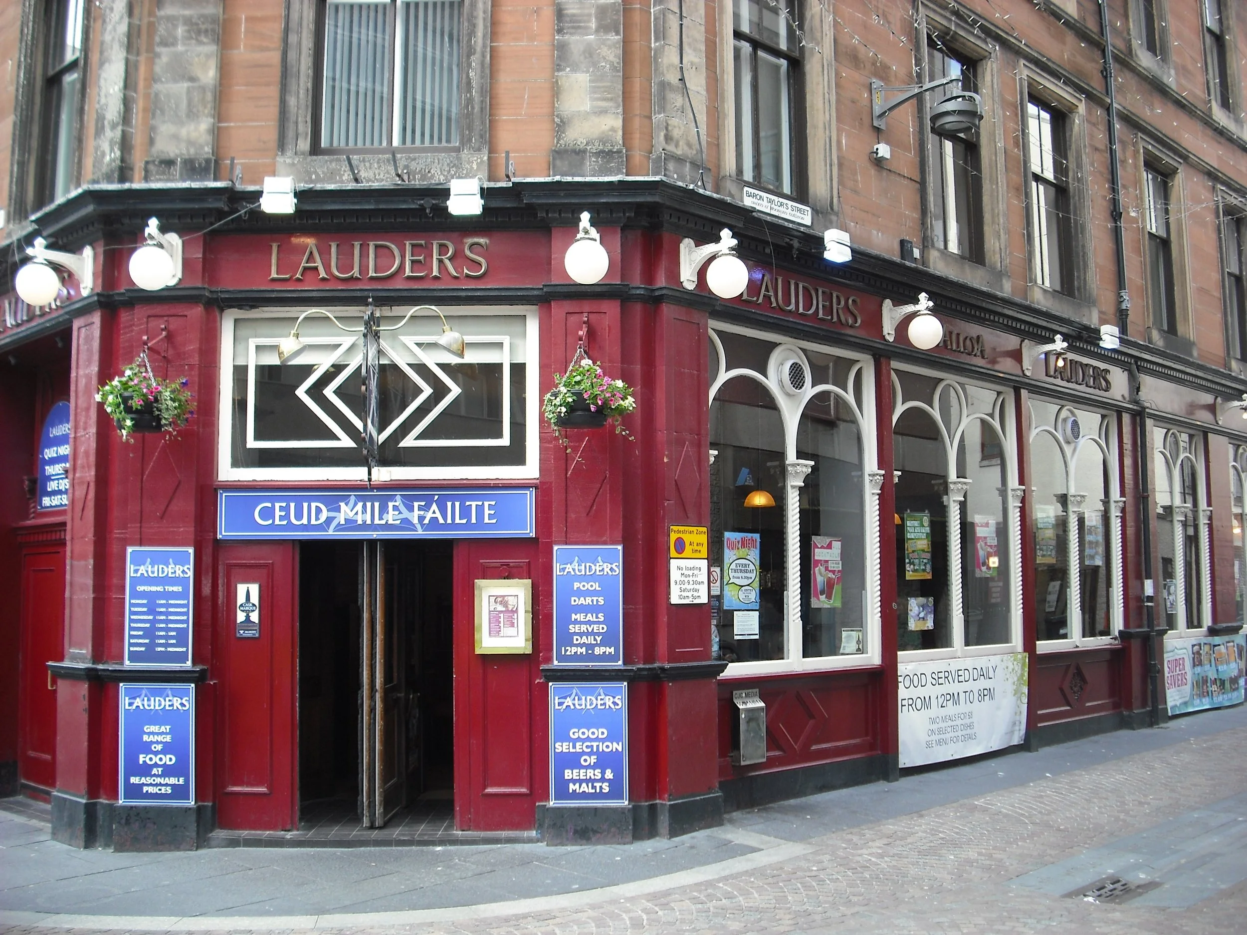 Starting at the Inverness Town House found on the corner where the High St becomes pedestrianised at this point there is The Caledonian. Now walk down towards the river and turn right into the narrow Church St. On the next corner is Lauders.