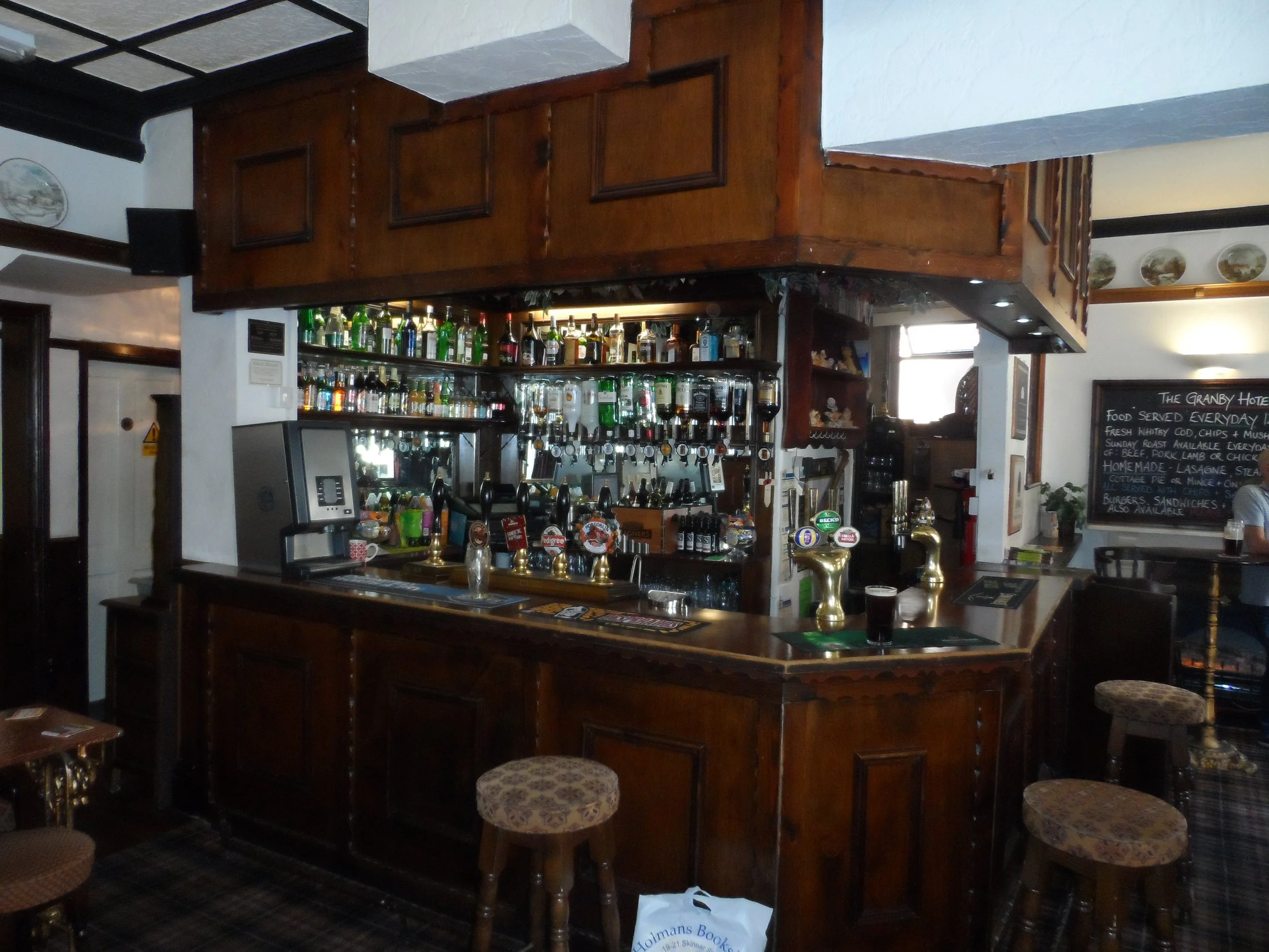 The Granby has three rooms. To the right are two interconnected rooms, first is a long bar with small tables and stools, then further on a second room. Down from the left of the entrance is a small square room with a corner servery connecting to the one upstairs.