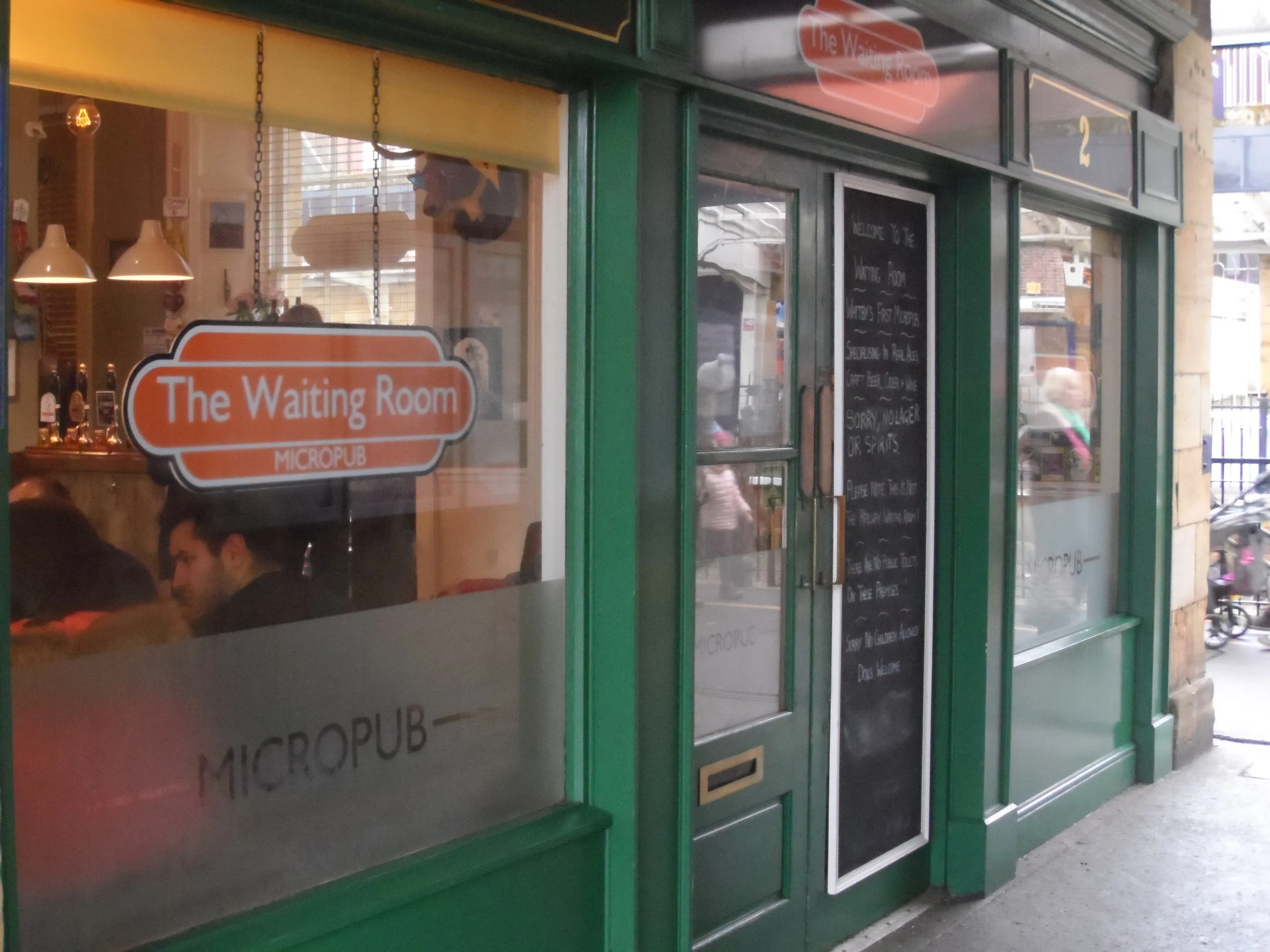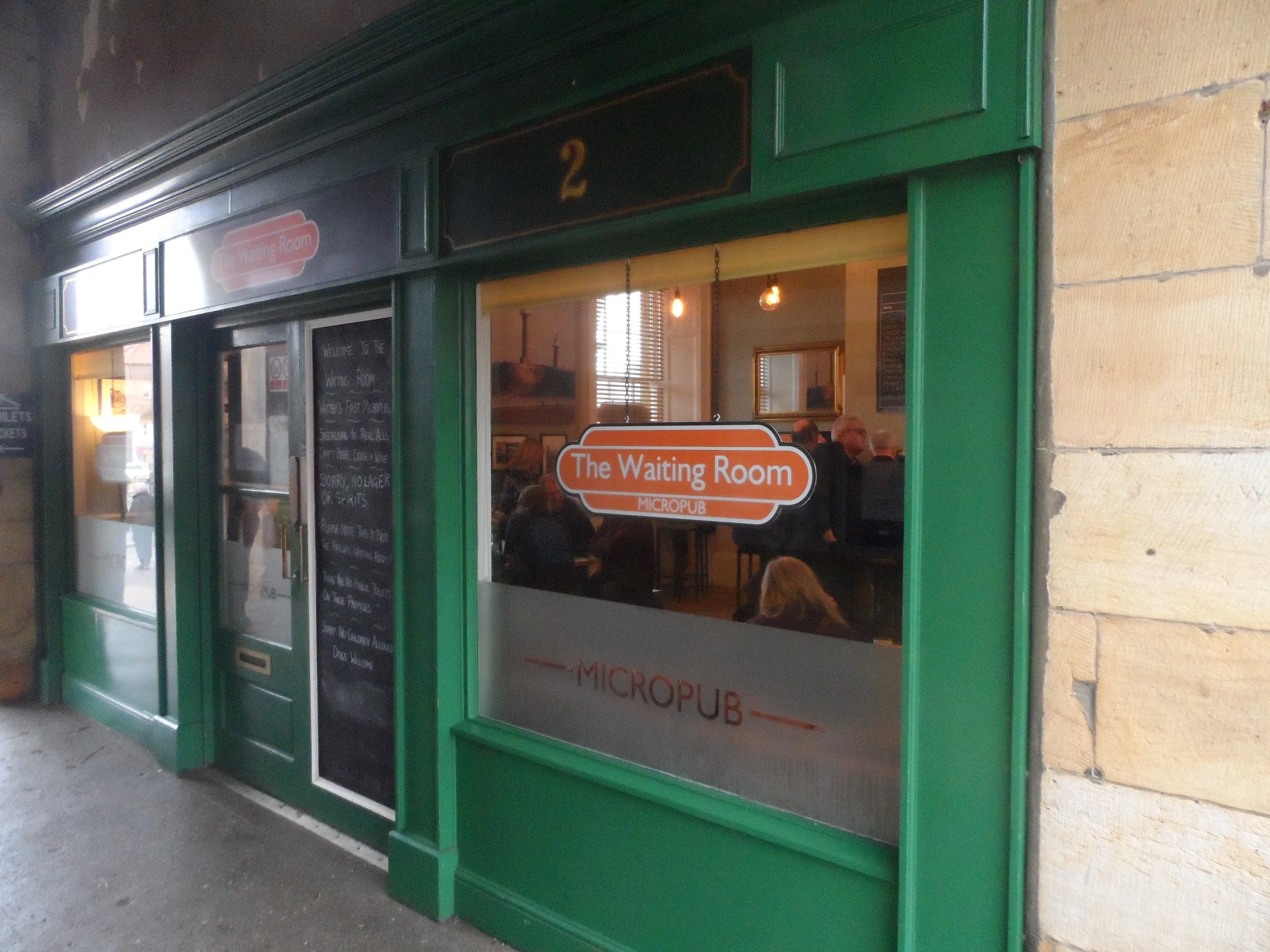 The Waiting Room is a micro pub in a room in the station. As you walk in the station the pub is on the left. The servery is in the far-right corner with a couch and low table to the right of door. The left side has a couple of tall tables and a large long table to left of door.