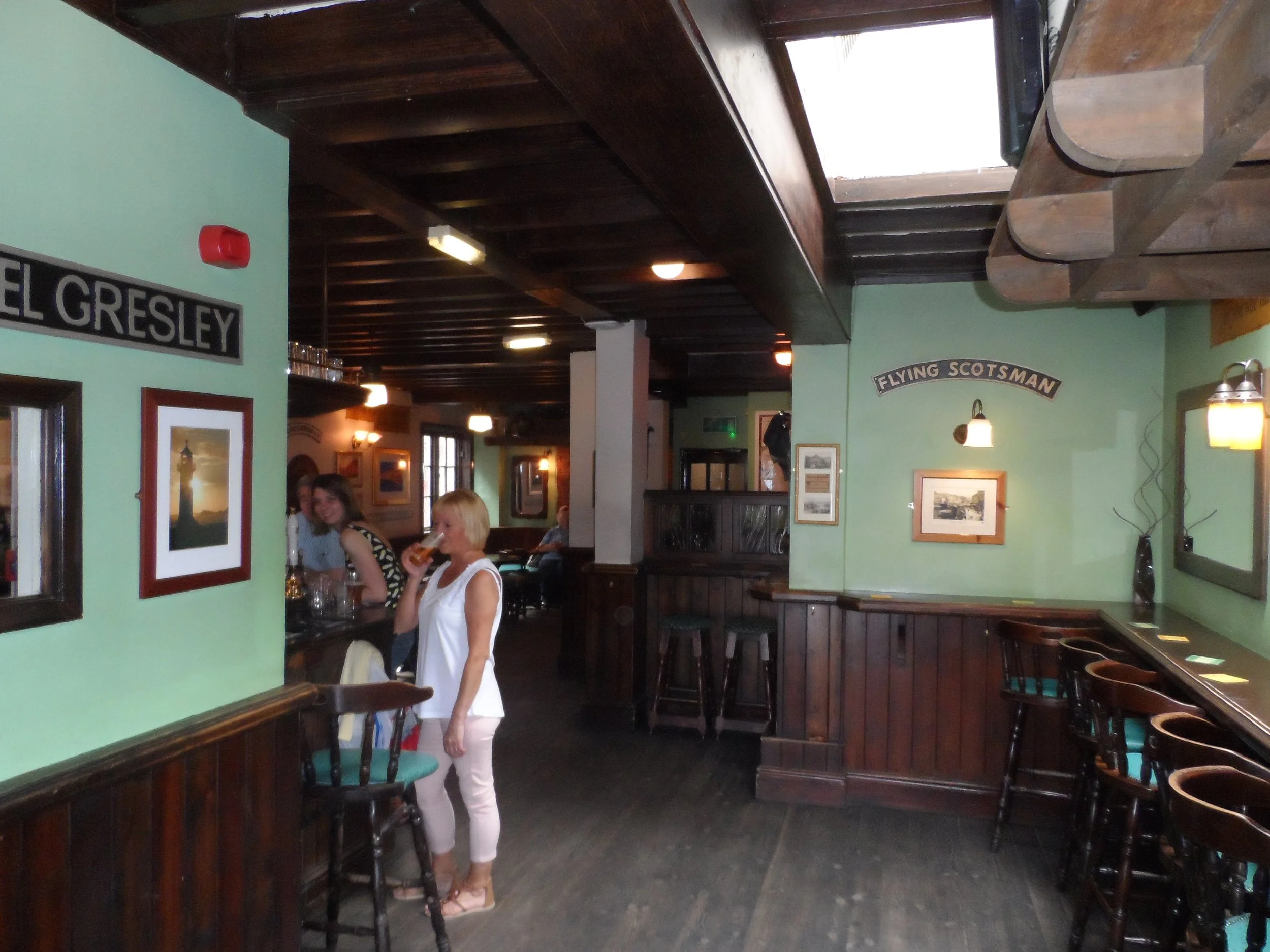 The Golden Lion is one of the smallest pubs in Whitby. The main entrance leads to a small room on the right and a relatively larger room further on at the end of the short corridor. Real ale pumps are in the further room. Since visit has re-opened as an Irish Pub - claims to be the only one in Whitby. How had the town survived?