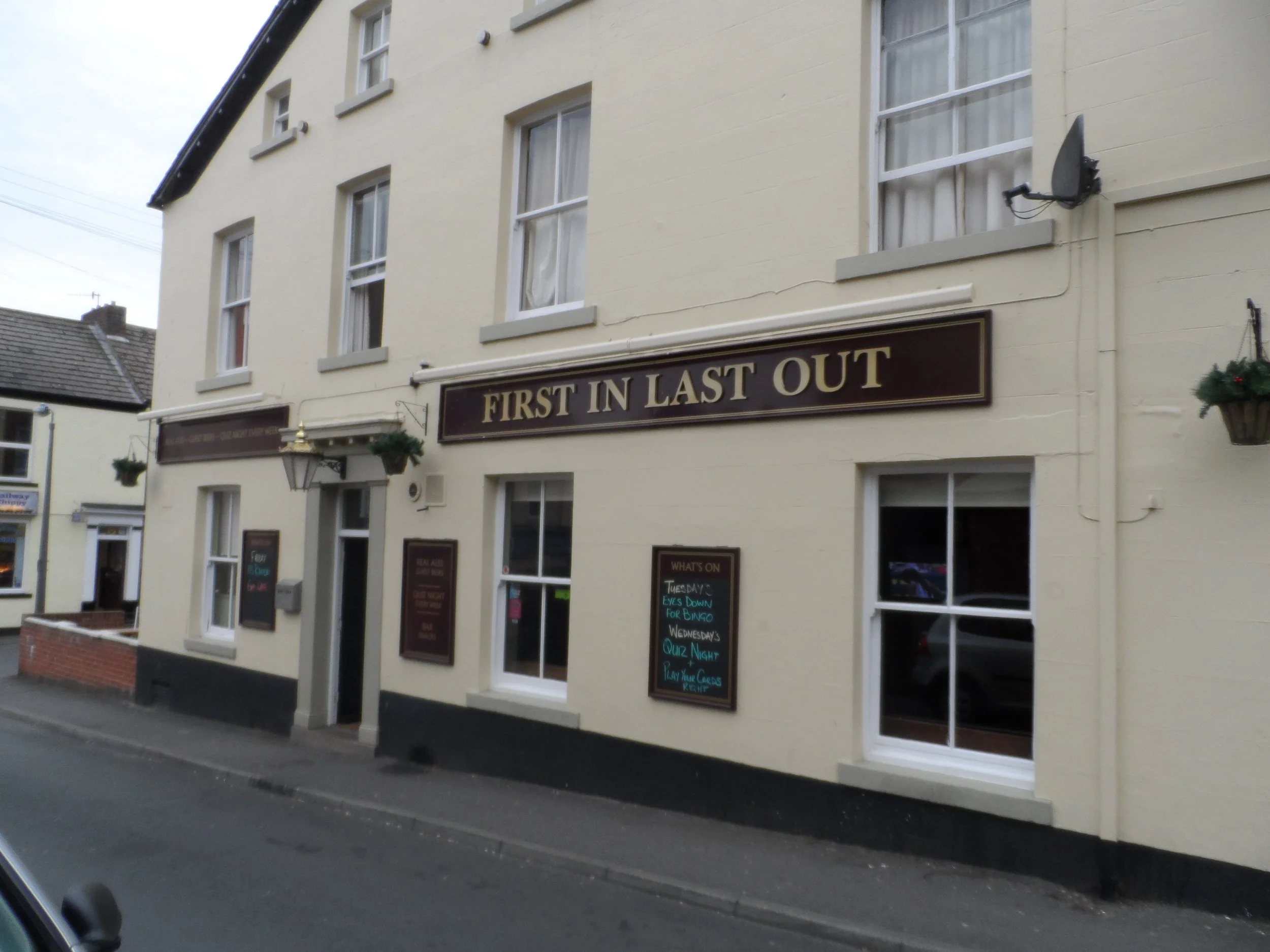 First In Last Out is a bit off of the beaten track but still worth searching out. It is a two roomed pub with some outside seating. The entrance takes you straight to the corner bar. The room widens to the right after the bar. To the left of the bar is a small room with some tables and stools.